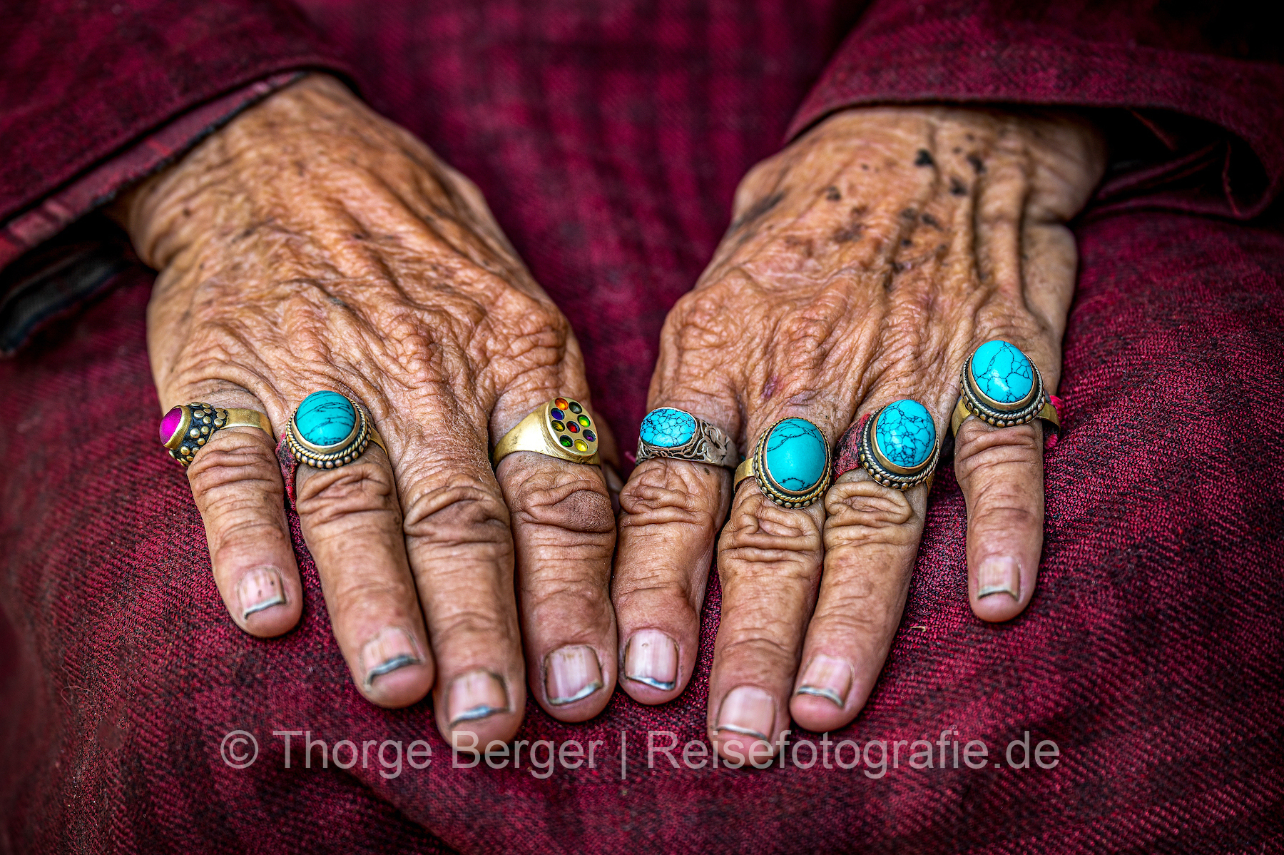 Tatsächlich habe ich ebenfalls ein Bild der Hände dieser alten Frau gemacht, als ich auf dem Weg von Kaschmir nach Ladakh bereits im Ort Dah war. Das war noch, bevor ich die Reise mit der Gruppe in Leh begonnen habe. Als ich Jürgens Foto später sah, musste ich aber neidlos anerkennen, dass es viel ausdrucksstärker ist, als mein eigenes. Darum möchte ich es hier auch vorstellen …
