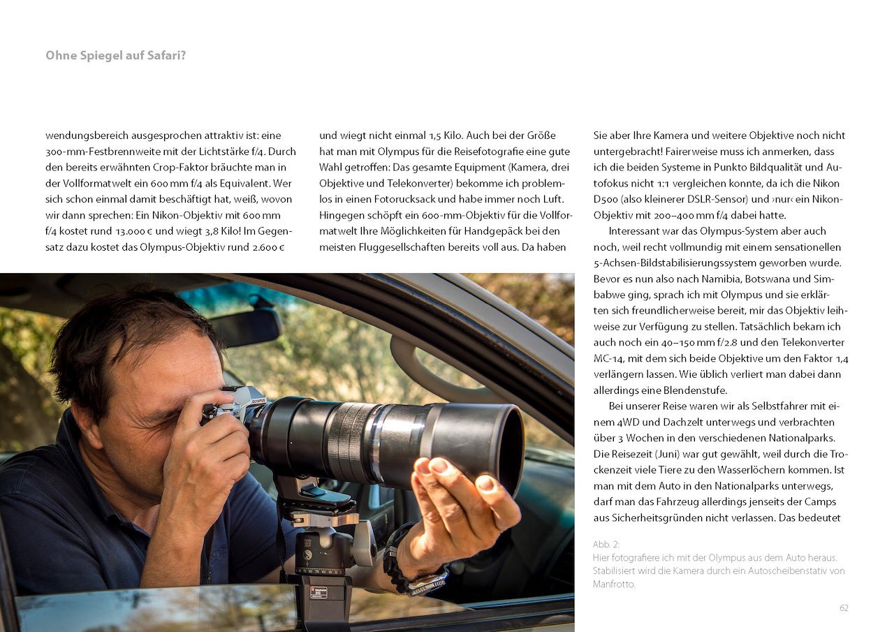 In der neuen Ausgabe des Fotoespresso, die heute erschienen ist, findet sich auch ein neuer Artikel von mir. Bei meiner letzten Fotoreise in Südwestafrika war ich knapp einen Monat in Namibia, Botswana und Simbabwe unterwegs und habe nicht nur mein übliches Nikon-System dabei gehabt, sondern auch ein Olympus-System, genau genommen eine Olympus O-MD E-M5 Mark II Kamera. Außerdem hatte Olympus mir zu meinem eigenen Objektiv (12-40mm f/2.8) noch zwei weitere sehr gute Objektive sowie einen Telekonverter für die Reise zum Testen gegeben: ein 40-150mm f/2.8 (entspricht 80-300mm im Vollformat) sowie das neue 300m f/4 (entspricht 600mm im Vollformat). Dafür an dieser Stelle noch einmal ganz herzlichen Dank!