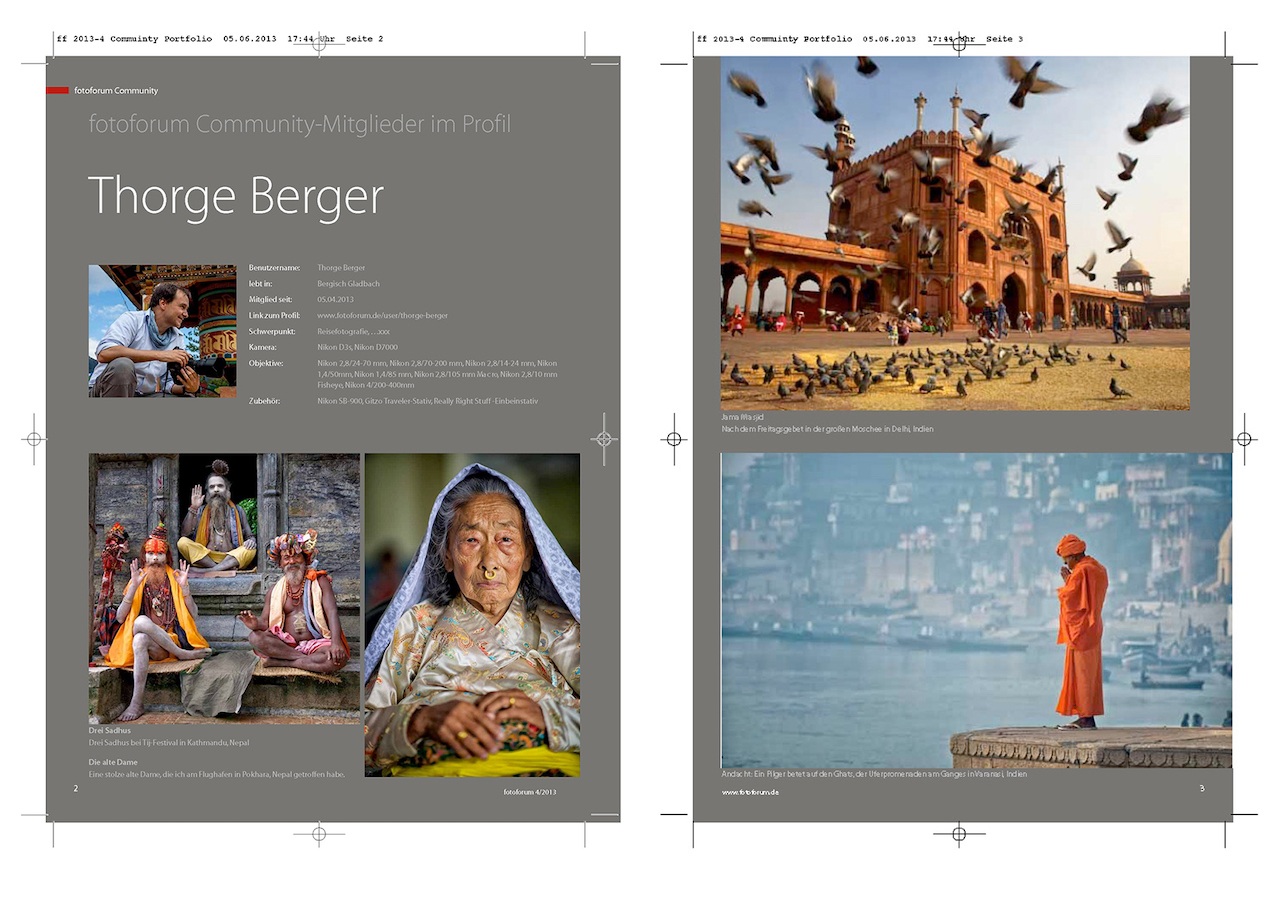 In der Ausgabe des Magazins fotoforum 04/2013 (Juli/August) gibt es ein 4-seitiges Feature über mich mit insgesamt 10 Fotos von mir!