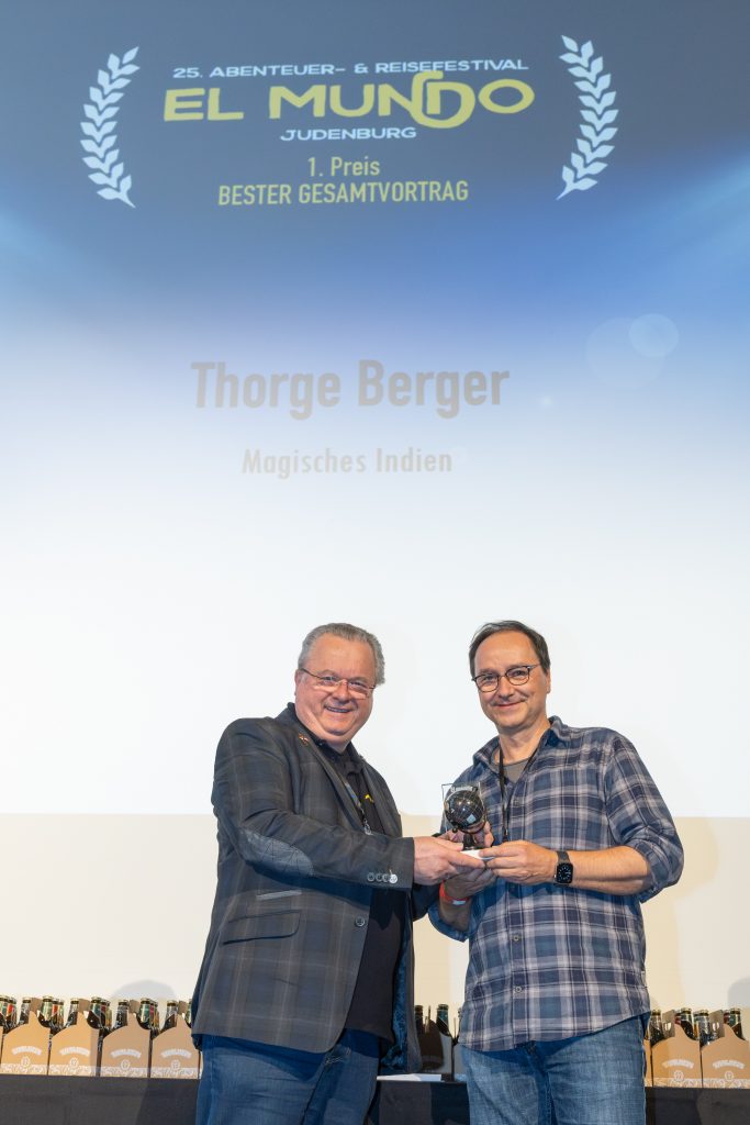Beim renommierten Reise- und Abenteuerfestival El Mundo 2025 wurde die Live-Reportage „Magisches INDIEN“ sowohl mit dem Preis für den besten Vortrag als auch mit dem Preis für beste Fotografie ausgezeichnet.